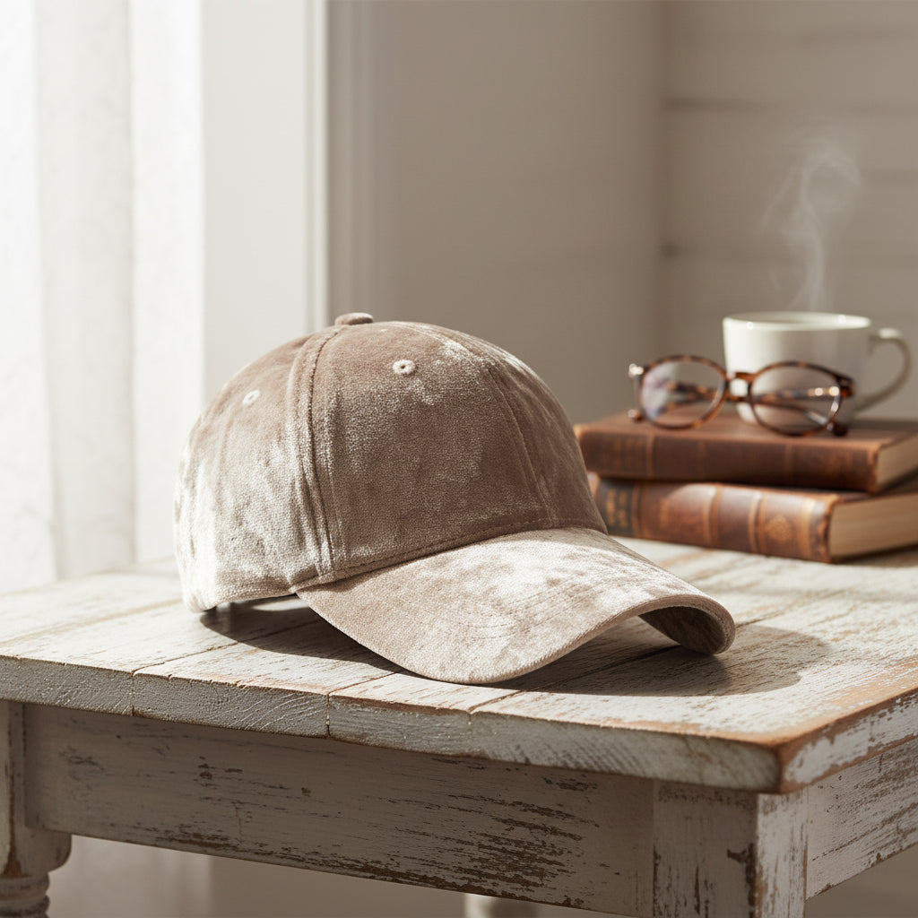 Casquette velours soie texturée chic